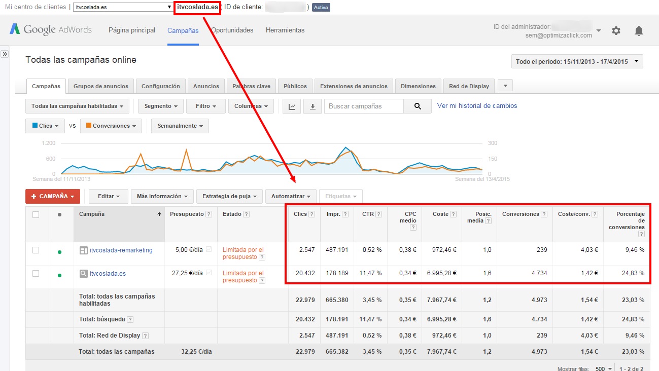 Desde que #AdWords permite realizar informes sobre los resultados de ambas estrategias de forma conjunta los beneficios de combinar el posicionamiento orgánico y patrocinado se transforman en una realidad palpable. En Optimizaclick contamos con varios ejemplos, pero centrémonos en uno en concreto para entenderlo mejor. La evolución de uno de nuestros clientes, ITV Coslada, durante el último año ha sido inmejorable.